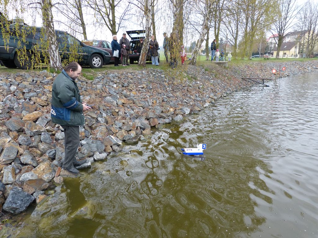 Počasí bylo všelijaké, rozhodně se nedá říci, že by bylo teplo. To však ve Velkém Přítočně třem desítkám modelářů pranic nevadilo. Jelikož jsme k vodě přijeli s předstihem, stihl Jiří Voráček roztopit svůj nový parníček (viz RC revue 4/2012) před oficiálním odemykáním. Jakmile došlo k otevření mola, začala se vodní plocha hemžit různými lodními modely.
