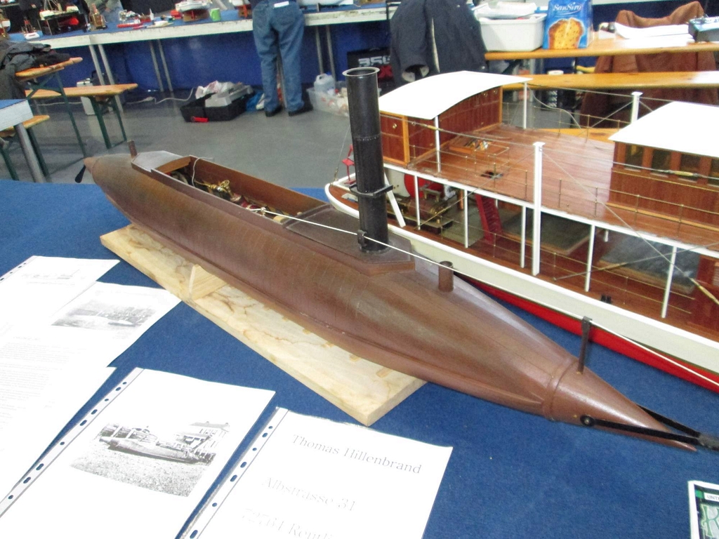 Po vstupu na veletrh jsem byl zcela ohromen u místního bazénu, kde bylo kolem 40 modelů parníků. Asi nejvíce obdivovaný parník byla Africká královna. Kousek od kulatého bazénu byl přívěs s parním člunem pro dvě dospělé osoby, což byla paráda pro porovnání s místními modely.
