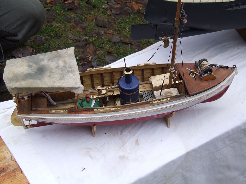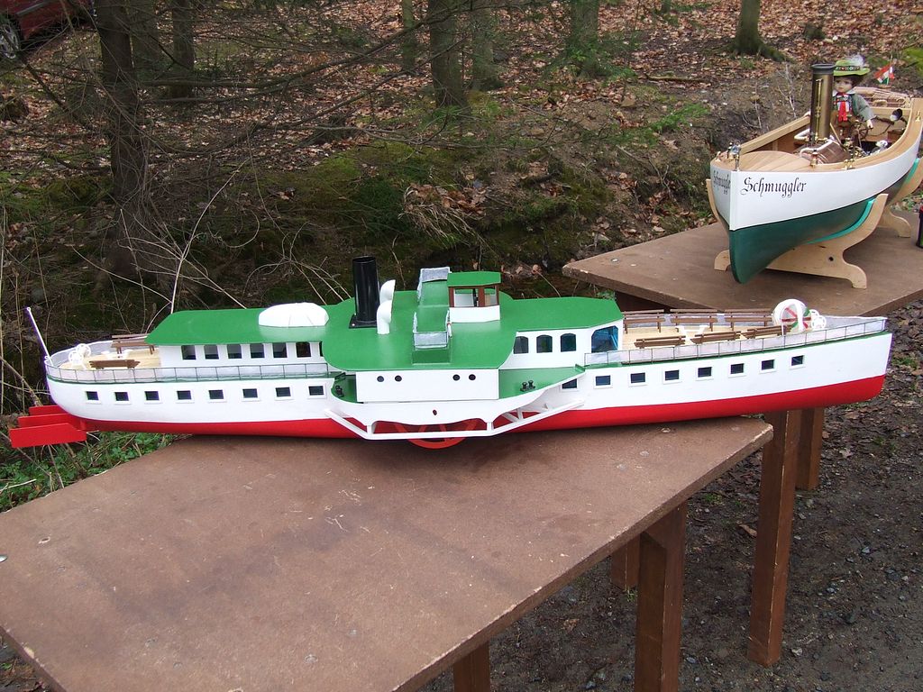 ), dále byly k vidění dva s turbínou a rovněž dva kolesové. Můj parní Springer absolvoval mimo soutěž svou první pokusnou plavbu po přestavbě na plyn a výměně parního stroje za americký. Jelikož se jedná o letitý nedodělek mých loděnic, do celkového počtu přítomných modelů jej nepočítám. Je na něm ještě práce jako na kostele, neboť původní nástavba z laminátových desek se v mezidobí napůl rozpadla a na nový palubní otvor stejně nepasuje - bombička se nevešla do podpalubí, a tak musela paluba pryč. Ivan Hořejší u své kolesové Olchy sice vezl bombičku na palubě, ovšem to je cesta, po které bych se vydával jen nerad.