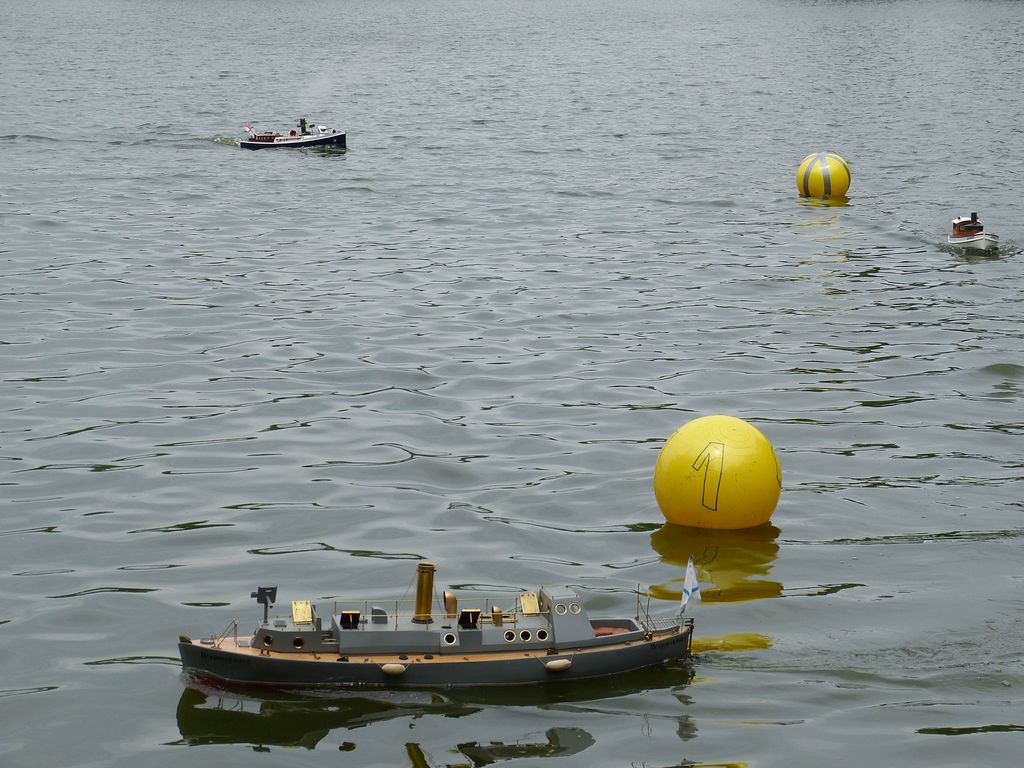 Po krátké pauze na oběd, vyplněné hlasováním o nejhezčí model, došlo na vytrvalostní závody. Nejprve kolesových parníků v délce 15 minut a poté zbývajících parníků na půl hodiny. Těm jsme s ohledem na bezpečnost trať zase protáhli, aby nemuselo ke krizovým situacím u bójek docházet tak často. I tak šlo o podívanou dramatickou. Občasné kolize u bójek vystřídal požár na palubě Slavena.