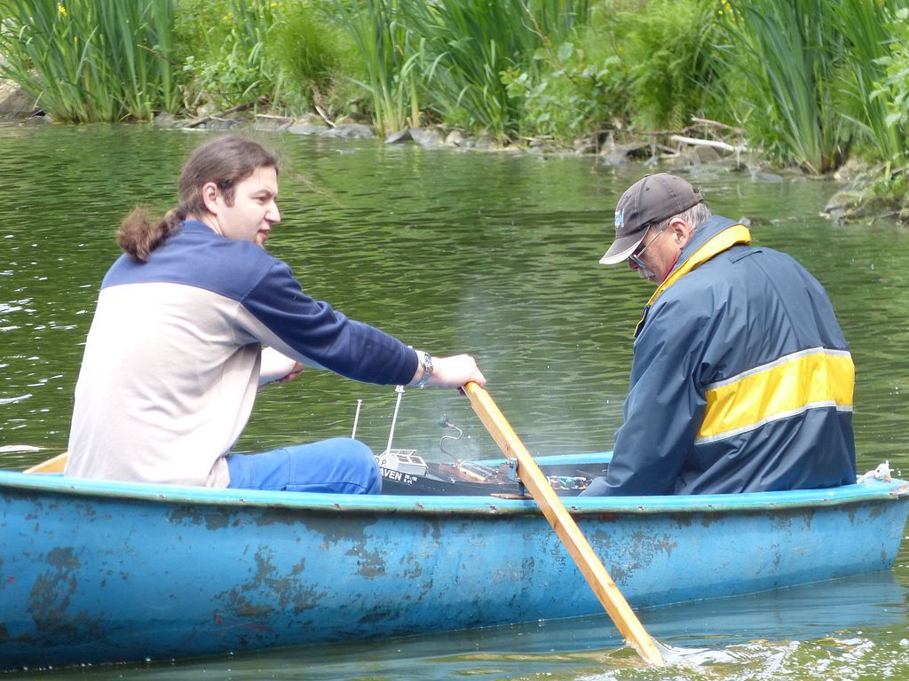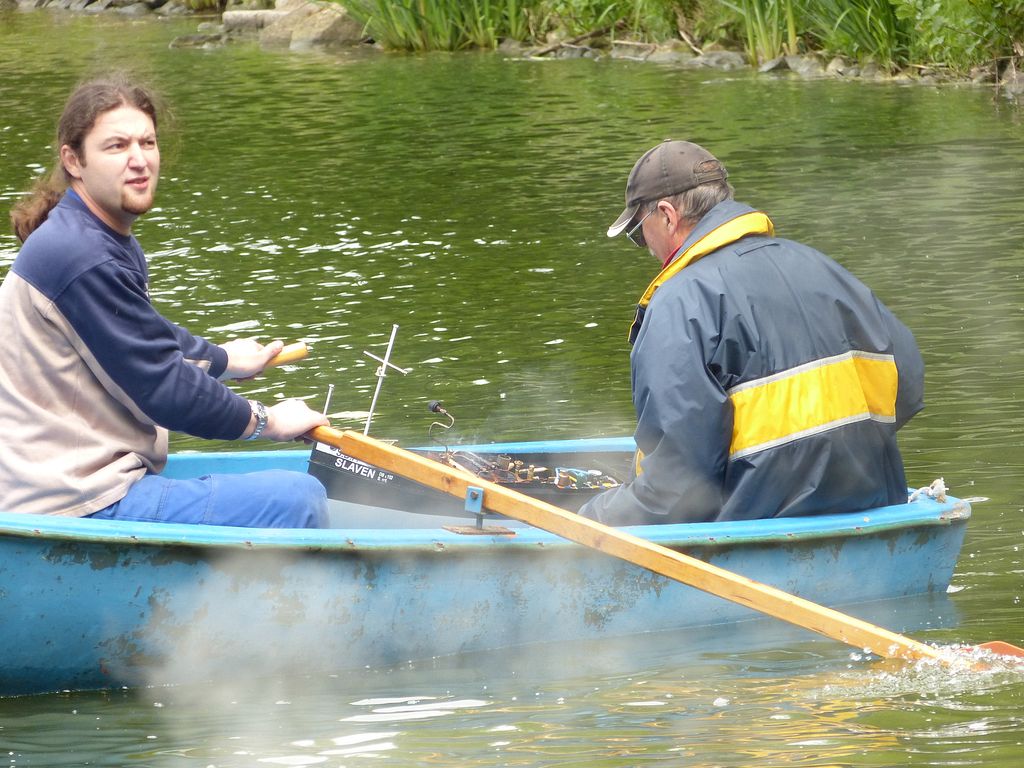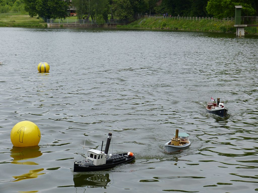Klání začalo soutěží 13 modelů s lodními šrouby. Abych měl jako rozhodčí lepší přehled, každý model odjel v rámci jedné soutěžní jízdy jen jeden okruh. A po krátké pauze druhý. Tím modely na jedno zatopení pod kotlem hravě absolvovaly dvě soutěžní jízdy, jelikož trať byla výrazně kratší než vloni.