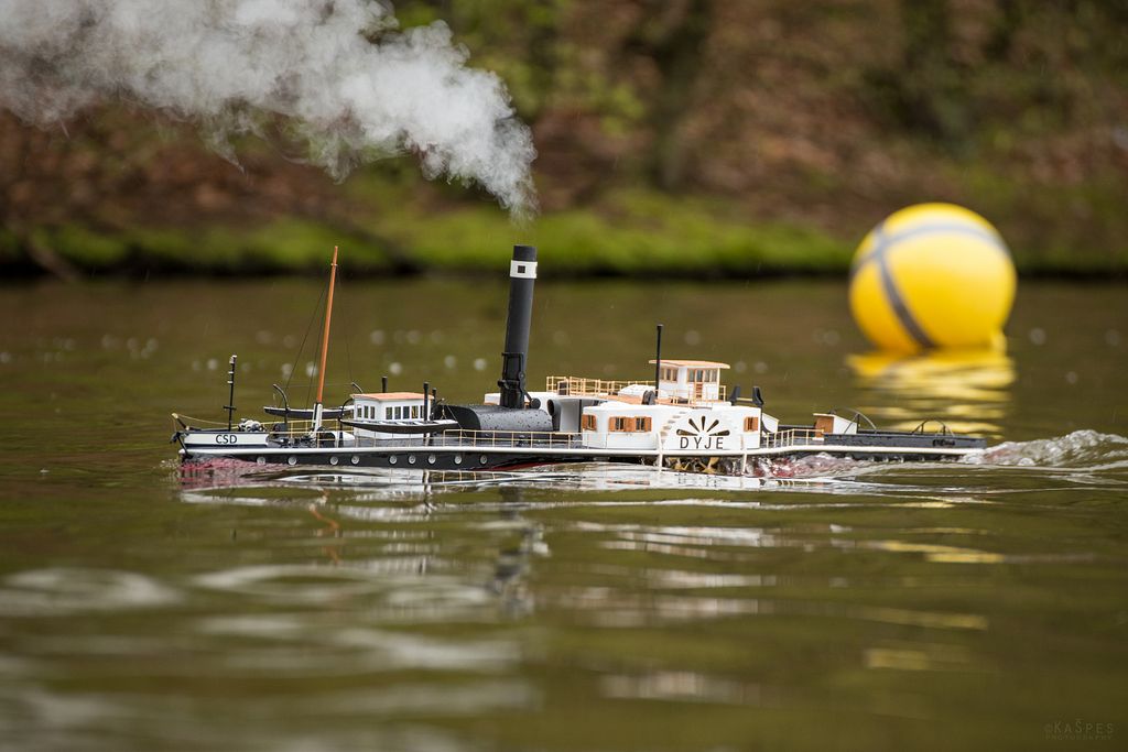 Trend, kdy nemá roztopeno nikdo, anebo přijde pět lidí naráz, se opakoval i letos. Měli jsme dvoje stopky, takže jsme na vodu pouštěli jen dva modely naráz, přičemž vše začalo soutěží parníků s lodními šrouby, kterých postupně vyplulo 12. Měřená dvě kola jich dokončilo jen 10, druhý pokus s ohledem na počasí využili jen někteří. Půlminutový náskok zajistil parníku Renown Vladimíra Šrámka první místo před slovenskými vyzyvateli.