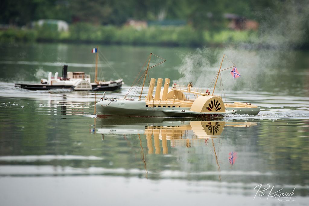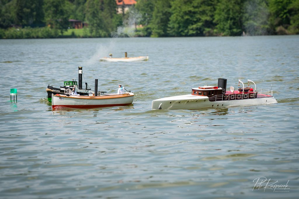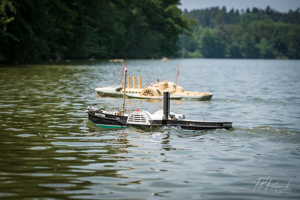 Po polední pauze následovaly hromadné starty vytrvalostních závodů. Nejprve kolesových parníků, které se daly do pohybu jen tři. Po čtvrthodinovém klání zvítězil Danton Petra Stejskala.