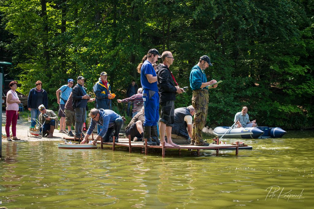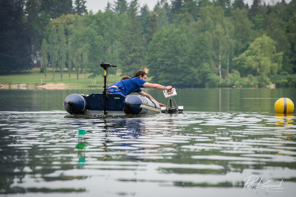 Přichystat zázemí u vody díky řadě pomocníků zabralo asi hodinu (molo, stany, stoly…), za což jim děkuji. Během kladení vzdálenějších bójek vyvstává boj o to, kam s nimi. Spolupořadatel Petr Stejskal by je snad nejraději vyvezl na protější břeh, zatímco ostatní preferují pár metrů od mola. Jako vždy jsem zvolil nějaký kompromis.