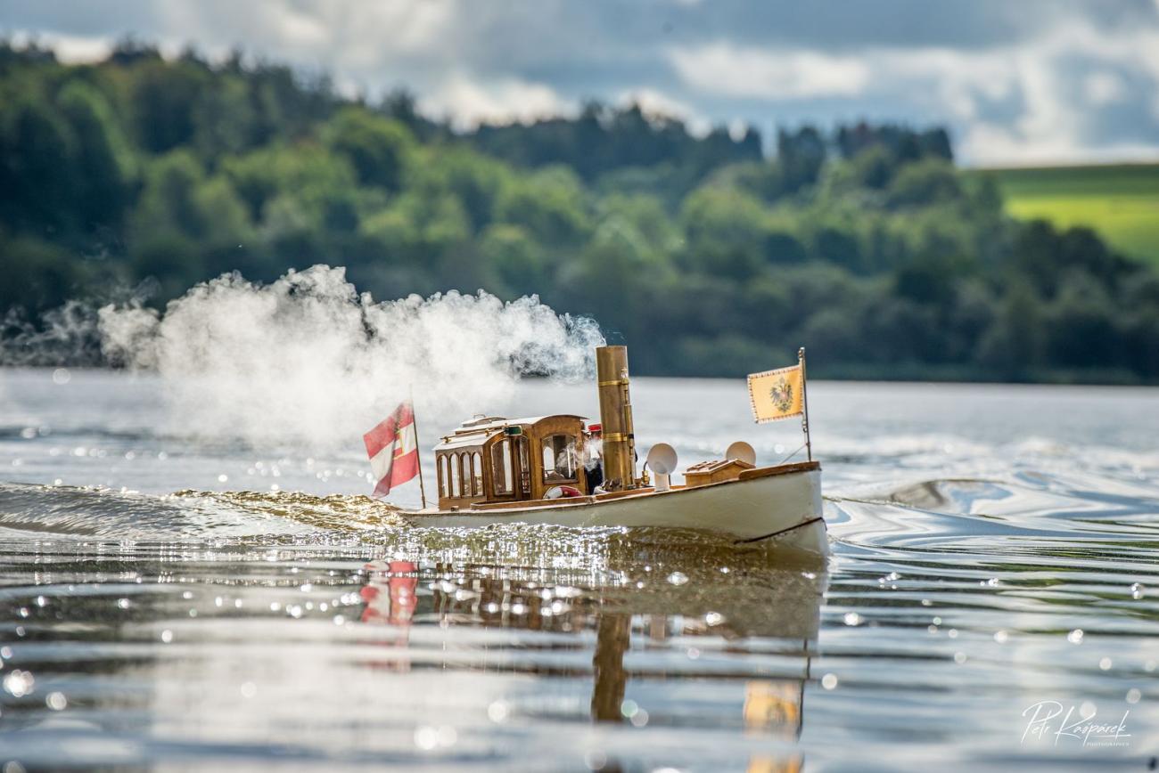 Když se nějaká modelářská akce koná 20 let, můžeme bezesporu hovořit o tradičním podniku. Parní Vyžlovka si za tu dobu vydobyla přízeň jak publika, tak samotných lodních modelářů. Nic na tom nemění skutečnost, že s původní lokalitou jí pojí již jen název. Vyžlovský rybník u obce Vyžlovka hostil prvních 15 ročníků, poté se další 4 konaly na Gradu u Káraného, aby se letos soutěž modelů parníků přesunula na Vysočinu ke Krucemburku do kempu Moře u rybníka Řeka. Poprvé byla celovíkendová s tím, že se soutěžilo v sobotu 2. a v neděli 3. září. Také svůj prostor poprvé dostaly modely plachetnic.