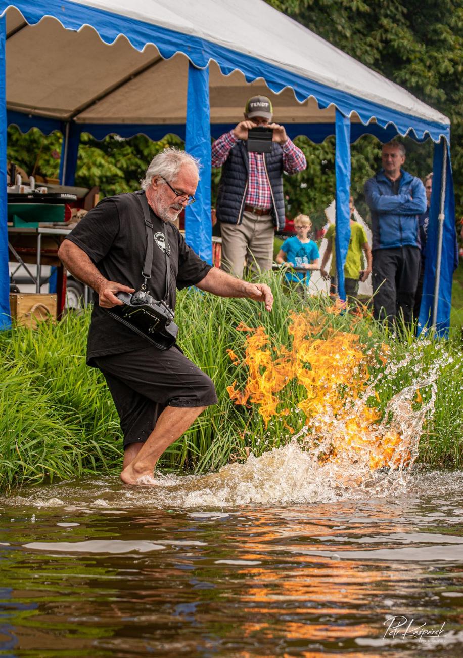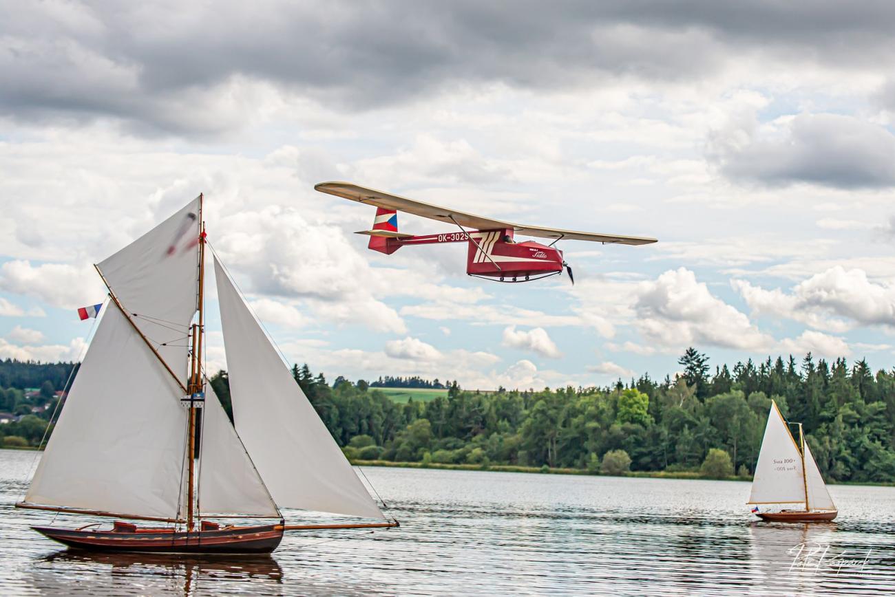 Snad i tato letová ukázka způsobila, že jsem večer neodolal a vytáhl z auta nedávno pořízený hydroplán. Po několika pokusech, kdy jsem namísto vzletu zajel do rákosí, se model na chvilku vznesl. Užuž jsem ho chtěl uklízet, když se mi nabídl Miroslav Beneš s tím, že ho zaletí. Po chvilce vzlétl a dokonce to vypadalo, že hned začal s akrobacií, když Piper přešel v let na zádech, jenže show netrvala dlouho. O sekundu později již práskl do vody. Odnesla to maketová vzpěra křídla a vylomený plovák. Ten je již zpátky na svém místě a vzpěra bůhvíkde. Tím byl letecký den ukončen.