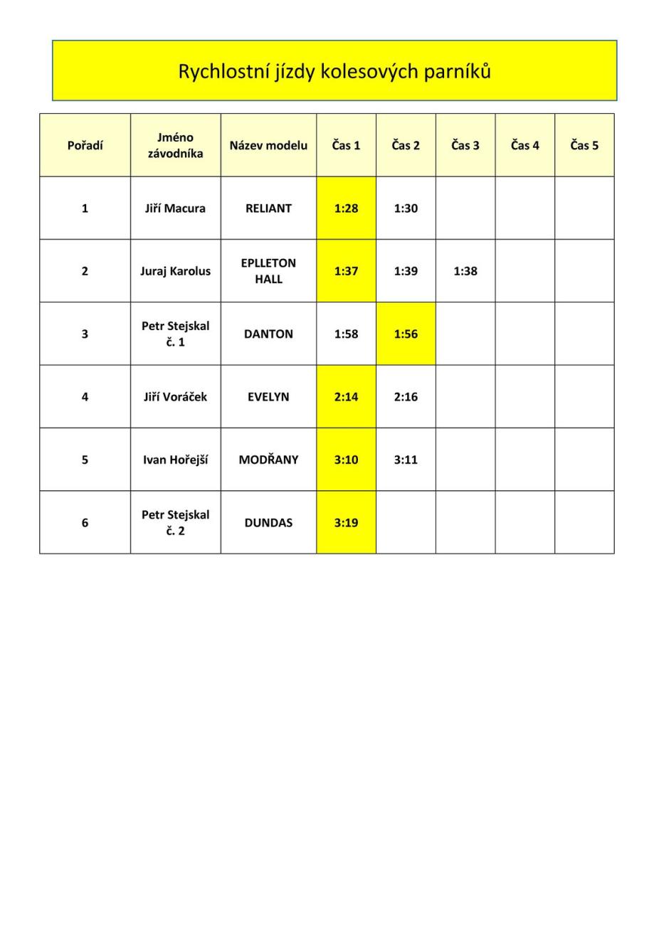 Sobota byla ve znamení rychlostních závodů jednotlivců. K vidění bylo 6 kolesových parníků, přičemž nejrychlejší byl Reliant Jiřího Macury.