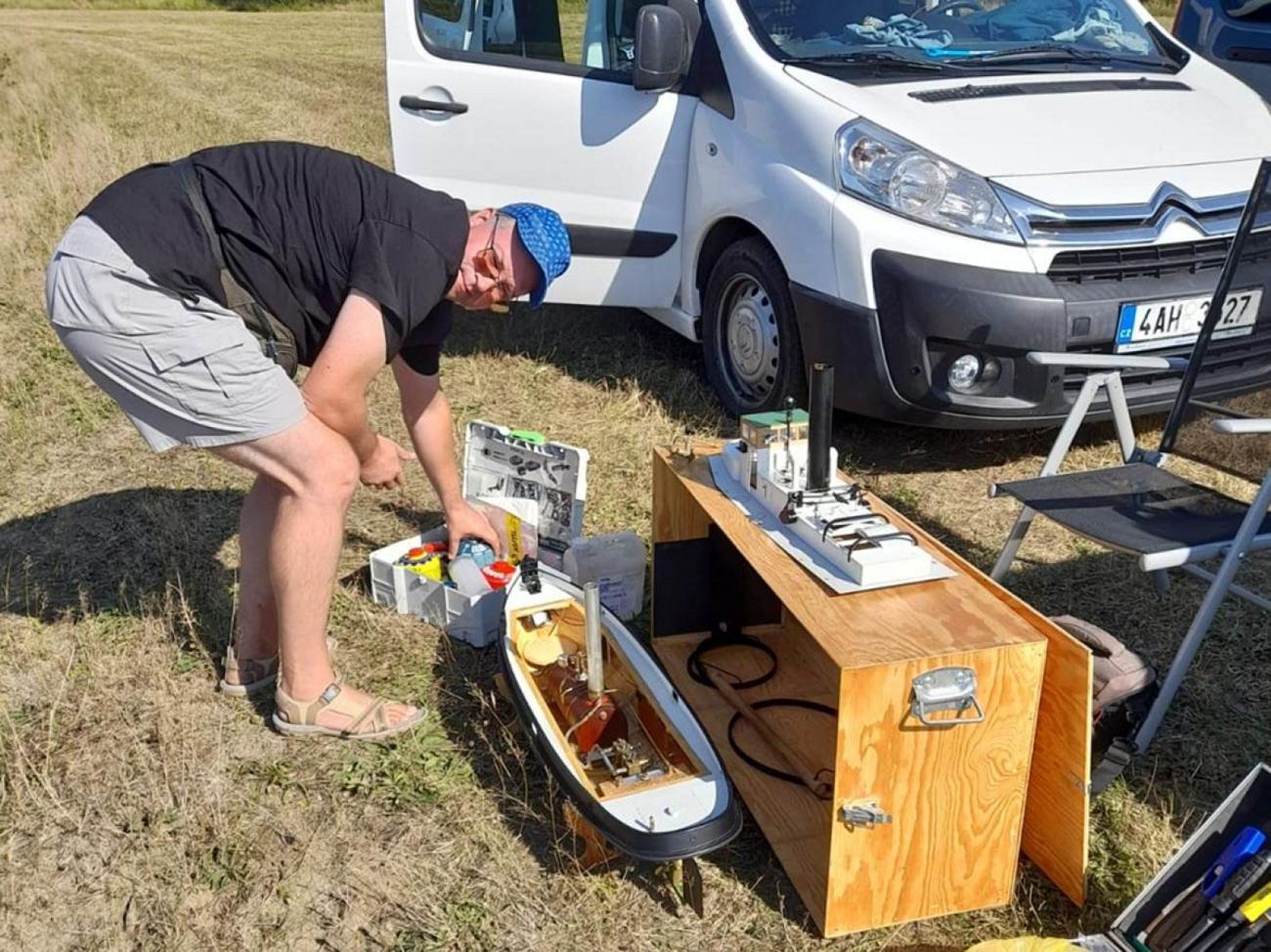 Při loňském 20. ročníku nás kemp Moře u rybníka Řeka nalákal zrcadlově klidnou hladinou, leč letos se nám ukázal v plné síle. Během pátečního odpoledne 6. září, kdy jsme se svými parníky i jinými modely přijížděli na místo konání, ještě panovala idylka. Mírný větřík a vlny však v sobotu ráno vystřídalo vlnobití s nárazy větru až 11 m/s. V naději, že se to třeba během dne zlepší a že předpovědi počasí nevyjdou, jsme postavili stan, nanosili stoly a dali se do soutěžení.