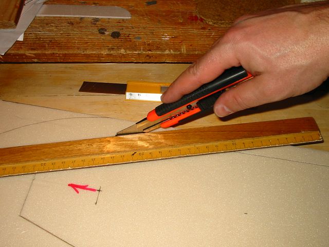 Materiál (polystyren) řežeme pomocí modelářského vysouvacího nože se zalamovací čepelí. Nůž musí být opravdu ostrý,