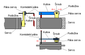 Nejsou složité. Vpodstatě stačí zabudovat standartní servo (SŘ) k ovládání kormidla. Propojení serva a kormidelní páky