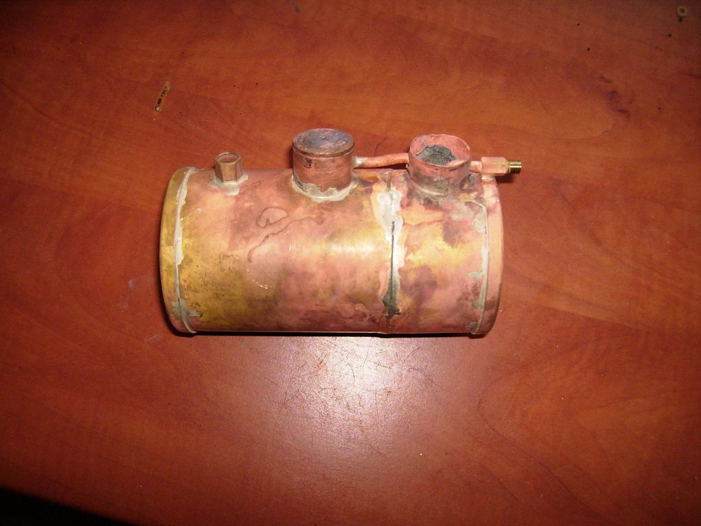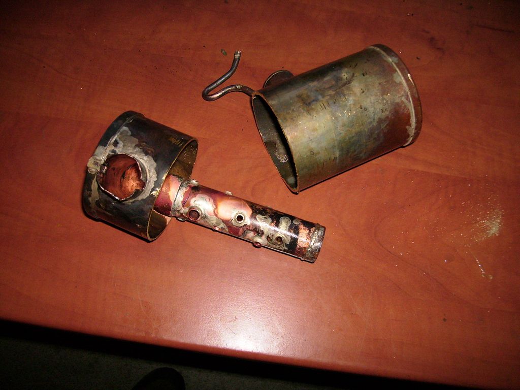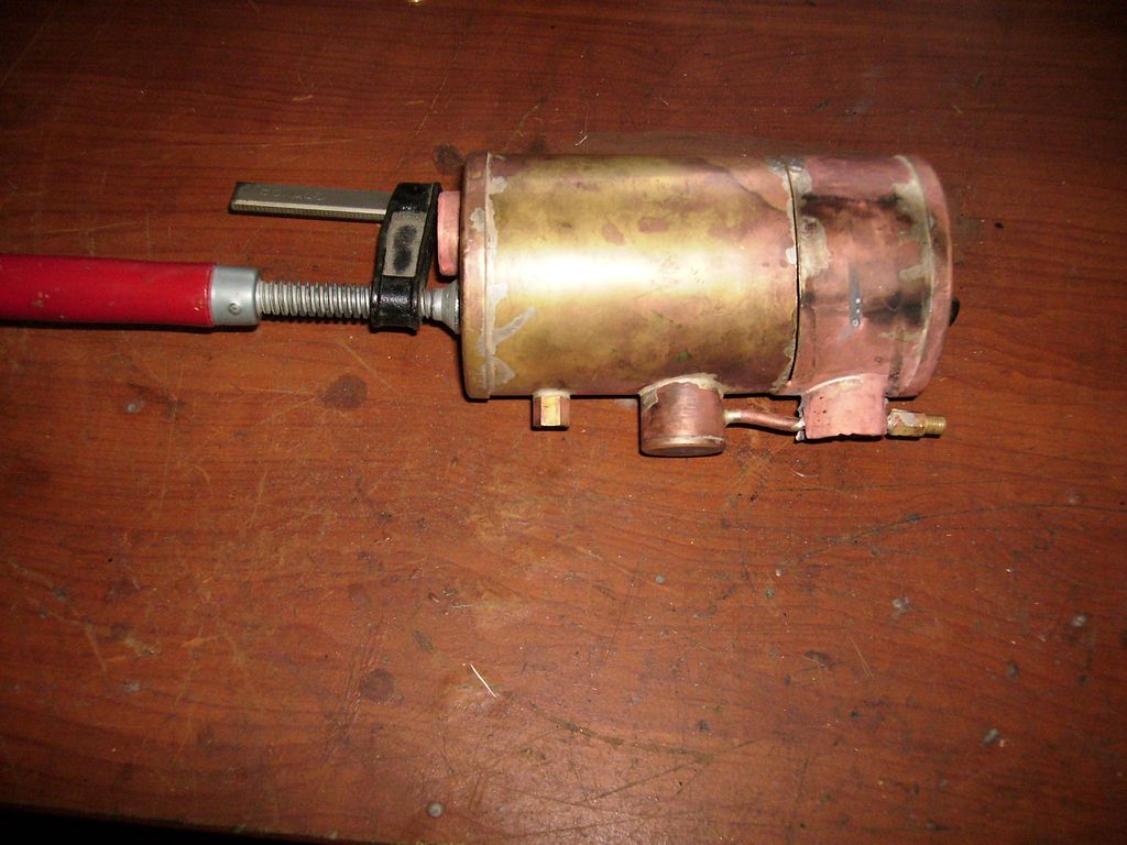 Přes noc jsem výrobek nechal macerovat v louhu na vápenec a ráno, pln nadšení, věc umyl, našrouboval fitinky a začal do plamencové trubky žíhat hořákem Meva 1200 W s úmyslem vyzkoušet, čeho je kotlík schopen.