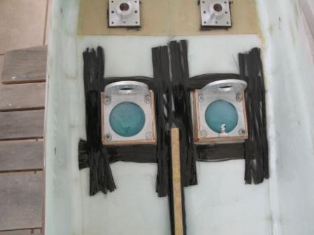 Po výrobě příčného pohonu (i když jej skutečná loď nemá) byl tento zalepen do trupu praskyřicí s namíchanými nastříhanými kousky uhlíkového rovingu.