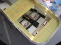 Dále jsou v trupu vytvořené kastlíky pro pohonné baterie (2 x 10 čl. NiCd - 4000 mA), sokly pro serva (HS755MG), zesílení paluby pro uložení vlečného háku a nalepené lišty po obvodu jako doraz při lepní paluby. Na přídi je kastlík pro přijímačové baterie (4 čl. NiCd - 4000 mA), , které současně napájí serva a osvětlení modelu a kastlíky pro kotvy a patka pro příďový úvazník.