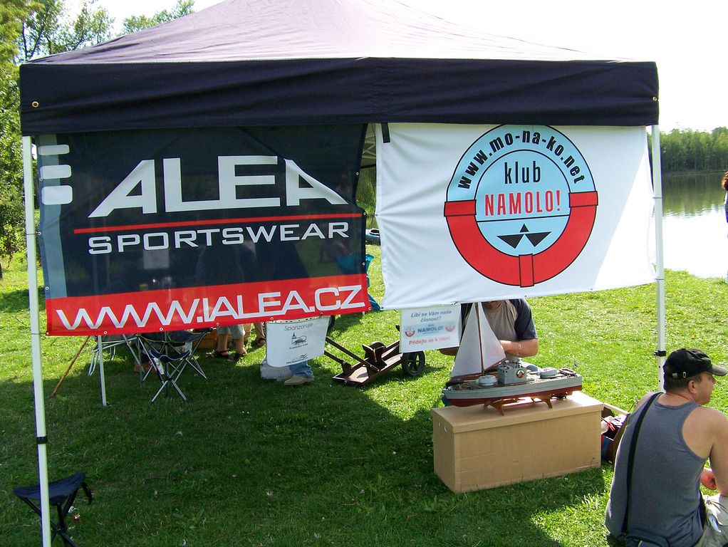 Nepodařilo se, a tak jsem byl přesně ve 14:00 h ještě doma, ale zázemí v podobě zapůjčeného stanu bylo nachystáno. Poprvé došlo i na prezentaci transparentu s logem klubu. Škoda, že nikdo z pražské sekce nedorazil, takže ta pravá premiéra se konala až v rámci posledního letošního souboje v TT. A to jsem se o pár dní dříve v Praze zúčastnil srazu v Polominu s tím, že budu za třetí písecké setkání lobovat. Nepřijel nikdo.