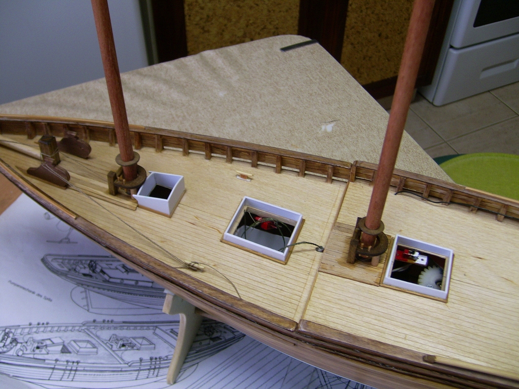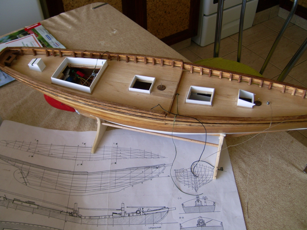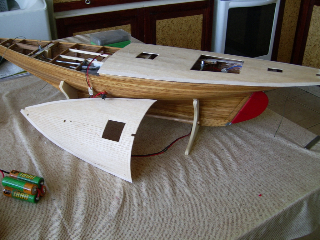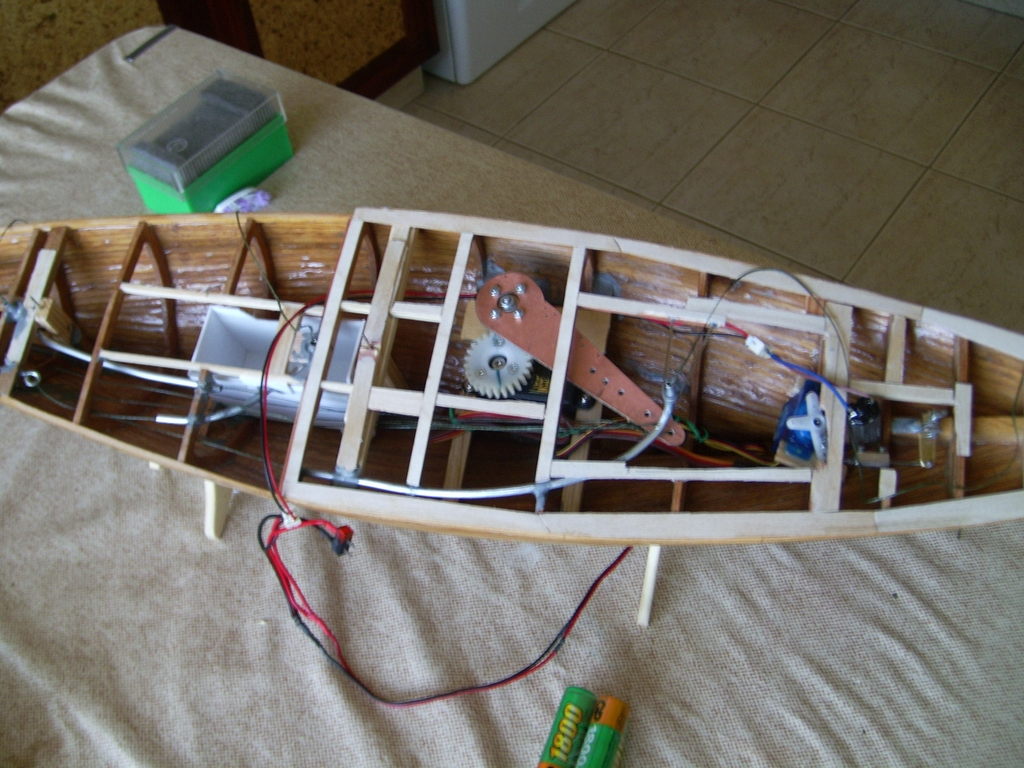 Zdroj energie 4 tuškové články. Trup a paluba sú plankované dyhou 1x2, 1x1, 1x3 a bambus 1x1 a 2x2. Paluba je z kusu dyhy.
