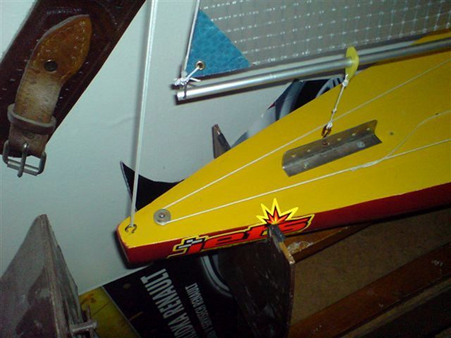 Ovládání plachet. Na otěže jsem opět použil lanko na žaluzie. Původně jsem chtěl na