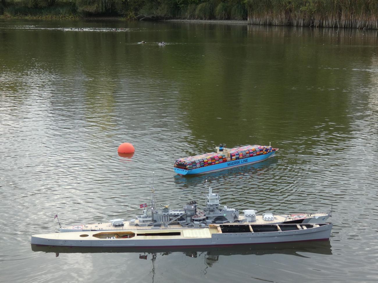 Plachetnic bylo k vidění poměrně dost, jelikož více modelářů si přineslo jak RG-65, tak Footy. Dále vodní plochu brázdilo několik remorkérů, ale hlavně kontejnerová loď Jiřího Čelikovského a Scharnhorst Vojty Tomka. Ten jistě již znáte, neboť článek o jeho zrodu je nejčtenější za uplynulý rok.