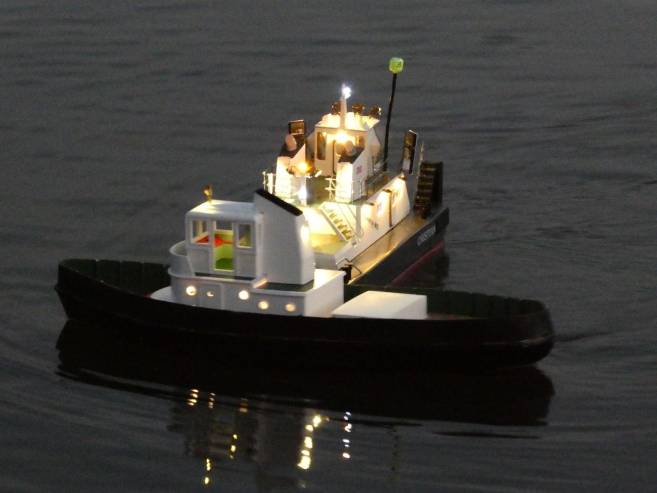 Nejspíš i proto se někteří účastníci na místo vydali zhruba o hodinu dříve. Byl mezi nimi i bývalý vedoucí kroužku Jirka Čelikovský. Ten však dorazil bez modelu a záhy po oficiálním začátku akce musel jinam, což je bezesporu škoda, jelikož jeho kontejnerová loď je za tmy úchvatná. Sám jsem poněkud zanedbal přípravu a narychlo před odjezdem z domu vzal jen Springera, když v původně zamýšleném modelu nebyl regulátor s redukčním kabelem. To je tak, když máte doma kolem 10 lodí s elektromotorem a jen dva regulátory. Kdybych se k odjezdu začal chystat dříve, v nějakém modelu bych ten kabel našel. O ten šlo především.