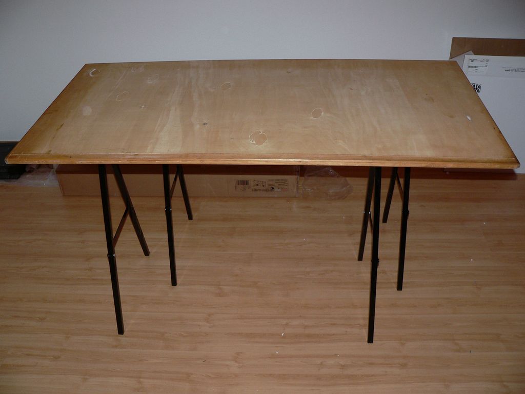 Už když jsem končil školu, tak jsem se nechtěl zbavovat desky rýsovacího prkna. Celkové rozměry byly 156 x 100 cm. Stále jsem přemýšlel, na co ji použít. Teď, když jsem se nastěhoval do nového bytu, tak jsem ji využil na pracovní desku.