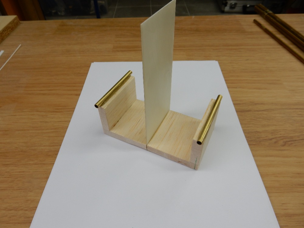 Nyní jsem rozdělil balzové díly na dvě části tak, aby jako můstek později překlenuly kýl lodi (bude patrno z dalšího). Obě části (obr. 18) jsem slepil v pravém úhlu (obr. 19). Po zaschnutí jsem je slepil k sobě s tím, že jsem mezi ně vložil plastovou laminátovou destičku tl. 1 mm. Balzové díly jsou dobroušeny tak, aby rozteč trubiček byla přesně taková, jako je rozteč lodních šroubů. Tím je můstek hotov (obr. 20).