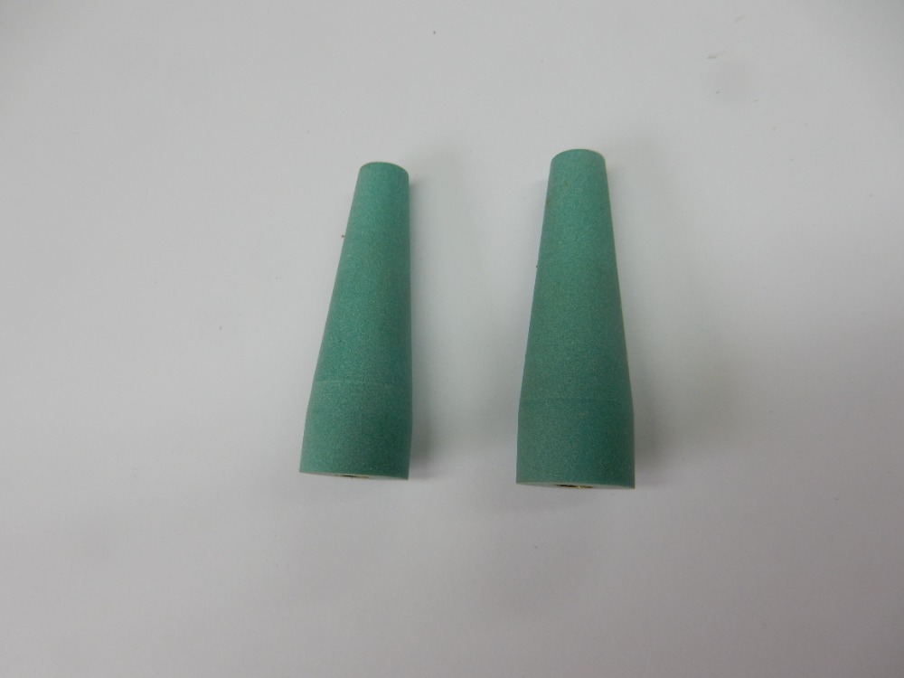 Následně jsem vysoustružil 2 ks válečků z umělého dřeva s navrtanými otvory pr. 4 mm (obr. 21). Ty jsem potom zbrousil pod úhlem, pod jakým hřídele vystupují z trupu (obr. 22).