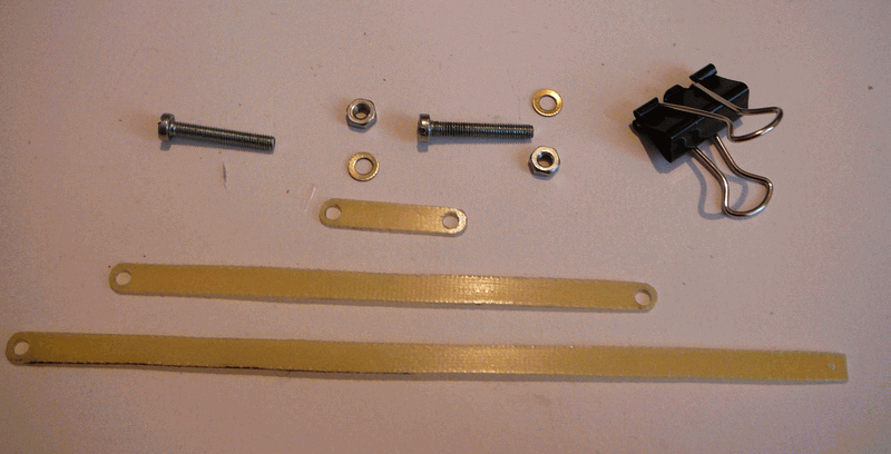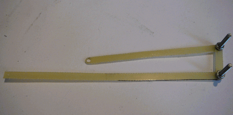 Tyto tři díly jsem spojil pomocí dvou šroubů, dva konce jsem nechal nesešroubované, abych mohl měnit úhel. Nenašel jsem žádné