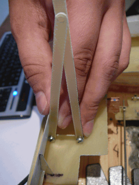 Tato podpěra se skládá ze tří částí. Udělal jsem si je z laminátové desky 1mm, je dostatečně pevná a nedochází k