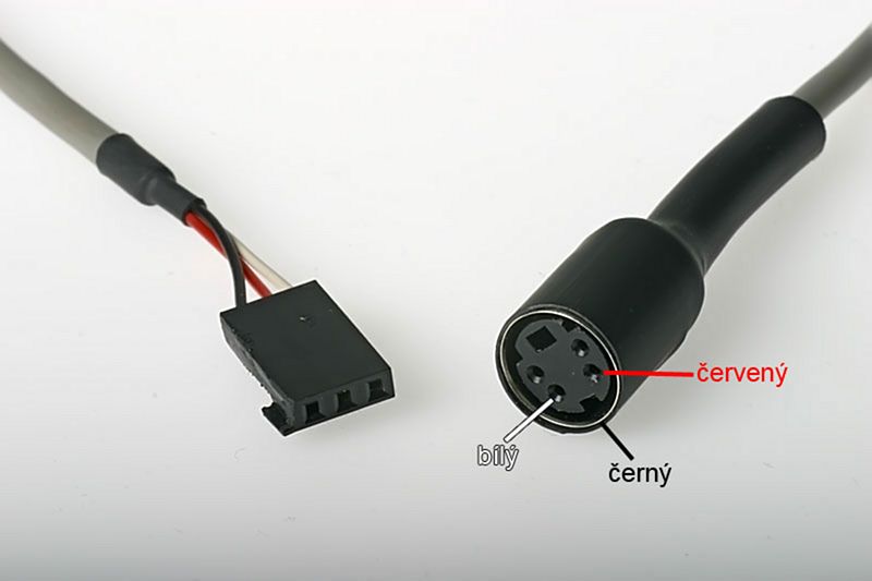 Jelikož pracuji v oblasti informatiky, zvolil jsem pro výrobu propojovacího kabelu s převodníkem USB na RS232 jednoduše dostupné komponenty. Konektor do nabíječe je 3pinový, doporučují servokonektor Futaba. V šuplíku jsem našel starý propojovací audio kabel k CD-ROM, který je ukončen 4 pinovým konektorem na obou stranách. Kousek vedle ležela stará grafická karta z PC s konektorem S-Video. Takže jsem upravil audio kablík na 3pinový s výstupkem na jedné straně, aby nedošlo k obrácenému zapojení konektoru do nabíječky. Na druhý konec jsem naletoval S-Video konektor a přetáhnul smršťovací bužírkou.