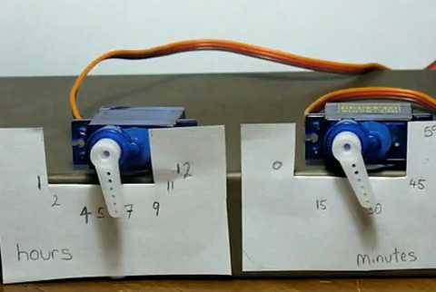 Na prvním servu jsou sekundy a na dalších postupně minuty, hodiny, dny, měsíce a rok, rok je od 0 do 9.