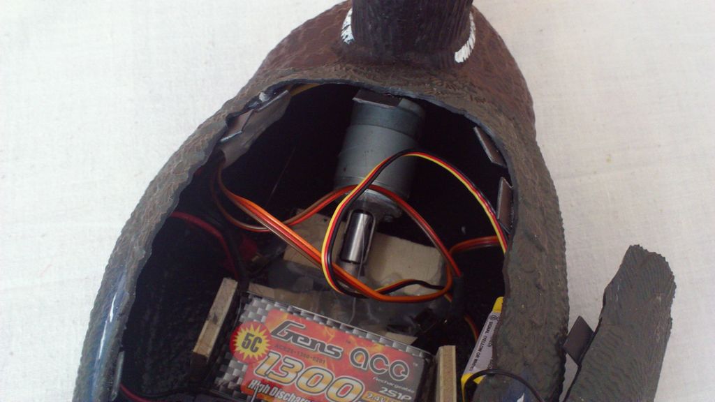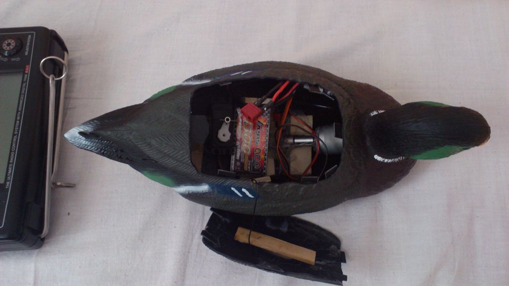 Ten nápad naprosto není nový, viz RC revue 9/2001 strana 53 - kačer od Oty Gerži s naprosto stejným původem a podobným pohonem. Ten za sebou tahal i kachnu s káčaty. A vsadil bych se, že by se našla ještě starší inpirace, tyhle plastové kachny se prodávají už hodně dlouho. Znáte někdo starší "RC kachnu"?