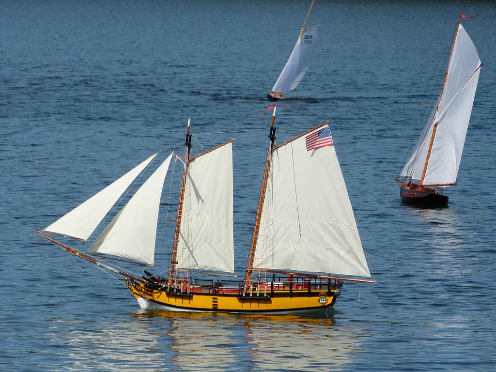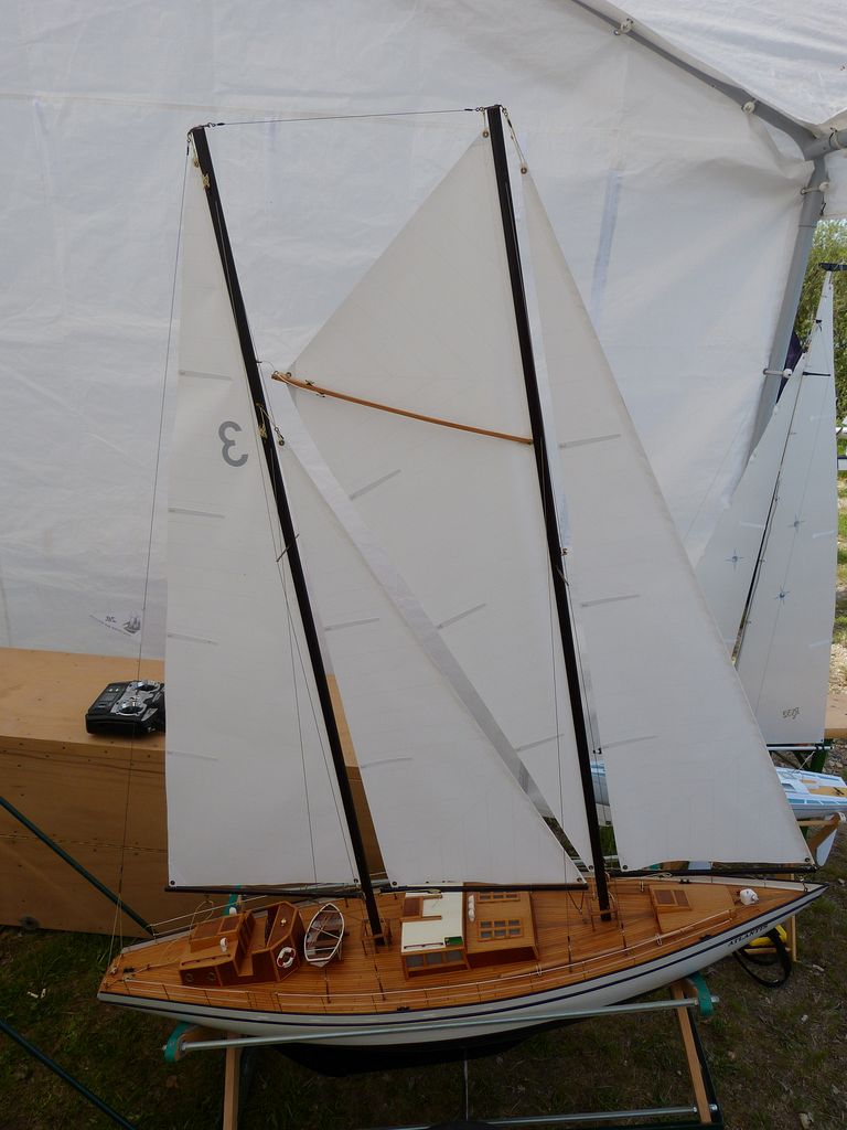 V NSS-B jsem se obzvláště radoval z účasti klubového kolegy Milana Dvořáka, který po letech dokončil plachetnici Dorian Gray. Jak se posléze ukázalo, lanoví pustilo po styku s vodou barvu, takže jsou plachty hnedle flekaté. Ale co, po bitvě je každý generál. Pepa Mrákota, ze kterého bude v dohledné době VIP (až si čtenáři přečtou RC Modely 5/2012), představil novou plachetnici Jolie Brise. Nicméně přívlastek „s kozou“ mu už nikdo neodpáře.