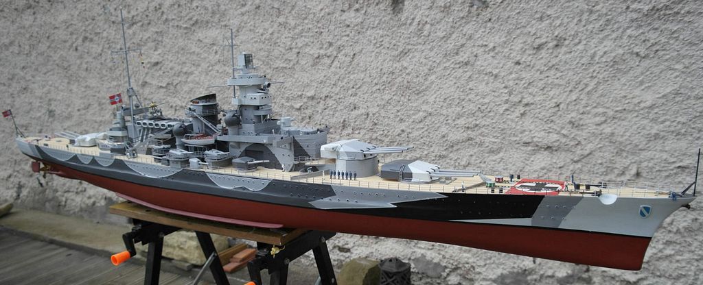 Hezké, po delší době se tu zas objevuje model podle mého gusta. Po Mogami další WW2 legenda. A rovněž obdiv k výkonnosti autorových "loděnic". Dvě takové velké lodě v rozmezí pár let je slušný výkon. I když je zřejmé, že se zrovna nejedná o super detailně propracovanou soutěžní maketu, stejně si stavba jistě vyžádala spoustu času. Na detailních záběrech jsou sice znát určitá zjednodušení a nedokonalosti, ale z mého pohledu to vůbec nevadí, sám bych to nesvedl lépe a celkové pojetí modelu se mi (stejně jako v případě Mogami) docela zamlouvá, za mě takový vhodný kompromis. Účelem není model zkoumat pod lupou, ale obdivovat při plavbě a při ní bude jistě na hladině působit dostatečně impozantním dojmem. Rád bych se dozvědel ještě více, než je uvedeno v článku, ale to by bylo na delší debatu. Nejlépe vidět naživo na nějaké akci. Tak doufejme, že se to letos na Lužinách povede.