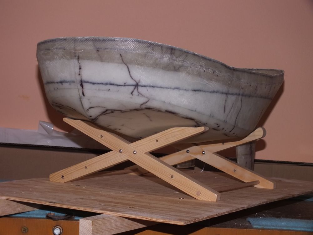 Trup dělám svojí osvědčenou metodou. Použil jsem pozitivní laminaci. Podle tvaru trupu má loď pracovní název Vajíčko.
