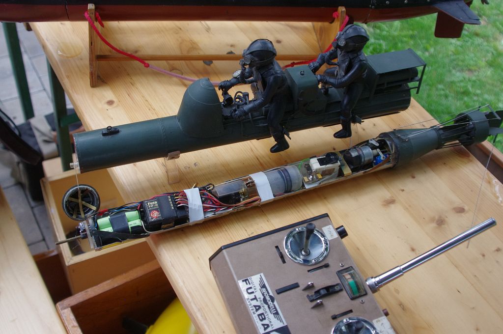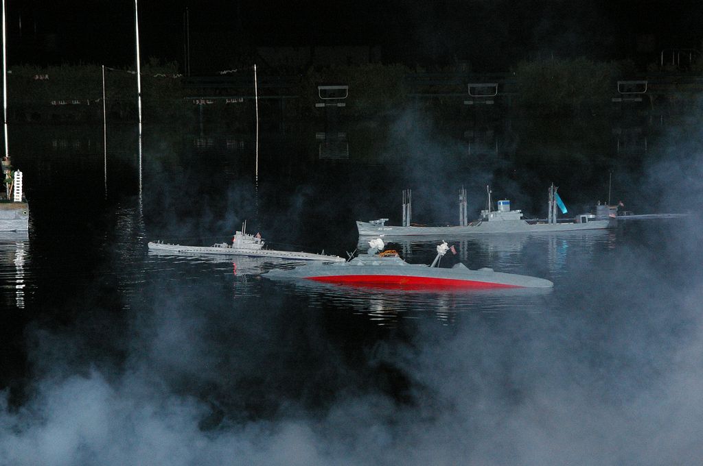 Pozornost si určitě zaslouží nová miniponorka Oty Gerži, která byla na setkání poprvé vyzkoušena v plné činnosti. Od ponorky se totiž na povel odpoutává podvěšené torpédo (víceméně stejně velké jako vlastní ponorka) a vydá se ke svému cíli. Obě části jsou řízeny rádiem. Odpalování bude chtít ještě trochu cviku, než bude vypadat efektně a opravdu dokáže zasáhnout cíl, ale technika prokazatelně fungovala. Torpédo dokonce po nárazu „vybuchne“, tedy udělá ránu a někdy i vyhodí menší gejzír vody. Přes to neznečistí vodu a nic neohrozí, „výbuch“ je ve skutečnosti jen uvolnění stlačeného plynu z bombičky.