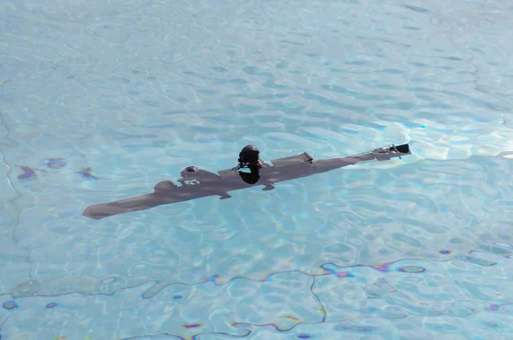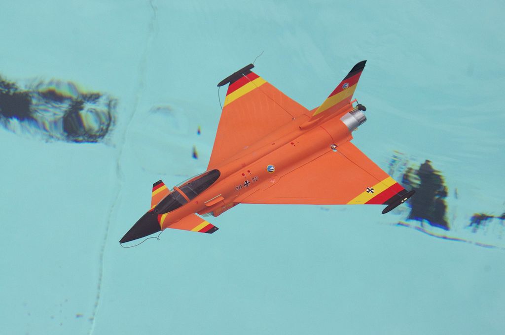 Když už jsem se tentokrát zaměřil víc na kuriozity, než na „seriózní“ modelářskou a maketářskou práci, musím ještě zmínit něco, co by bylo skvělou hračkou i ve větších zahradních bazénech. Norbert Brüggen upravil plastové letadlo Eurofighter Typhoon na jednoduchou dynamickou ponorku s neuvěřitelnou obratností a slušnou rychlostí. Vidět společnou stíhací plavbu Typhoona a delfína bylo hodně zajímavé.