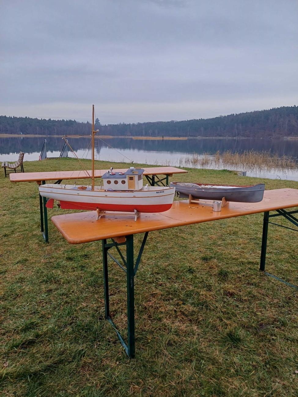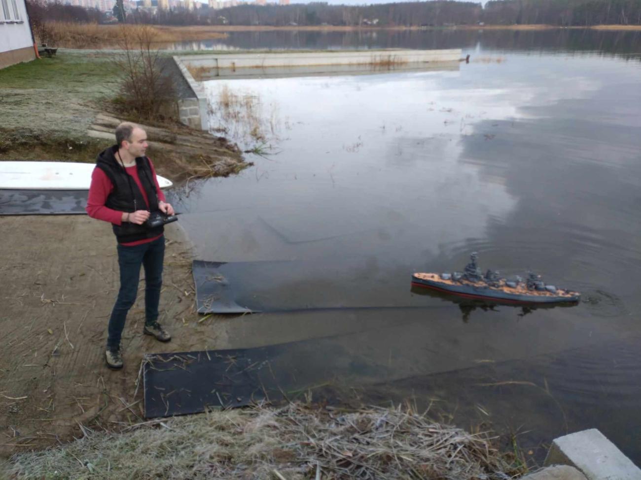 Za zmínku například stojí Ondra Vladyka, který se zde objevil se svojí majestátní bitevní lodí Texas v měřítku 1:100, která se již moc na akcích bohužel neobjevuje. Dále zde také byl můj parník, kterému sice úplně nesvědčily nízké teploty, ale svou (ne)funkčností všechny jistě pobavil. A i když vlastně nebyl žádný jasný program, pouze jsme naposledy v roce vytáhli své modely, abychom rozproudili hladinu rybníka a následně si do tepla šli sednout a pobavit se o našich úspěších a neúspěších, radostí i trampotách, modelařině i životě, tak myslím, že můžu s klidným srdcem zakončit článek se slovy, že jsme si to všichni užili a věříme, že příště to již budeme mít všichni v kalendářích a v hojném počtu se sejdeme a zakončíme rok 2024.