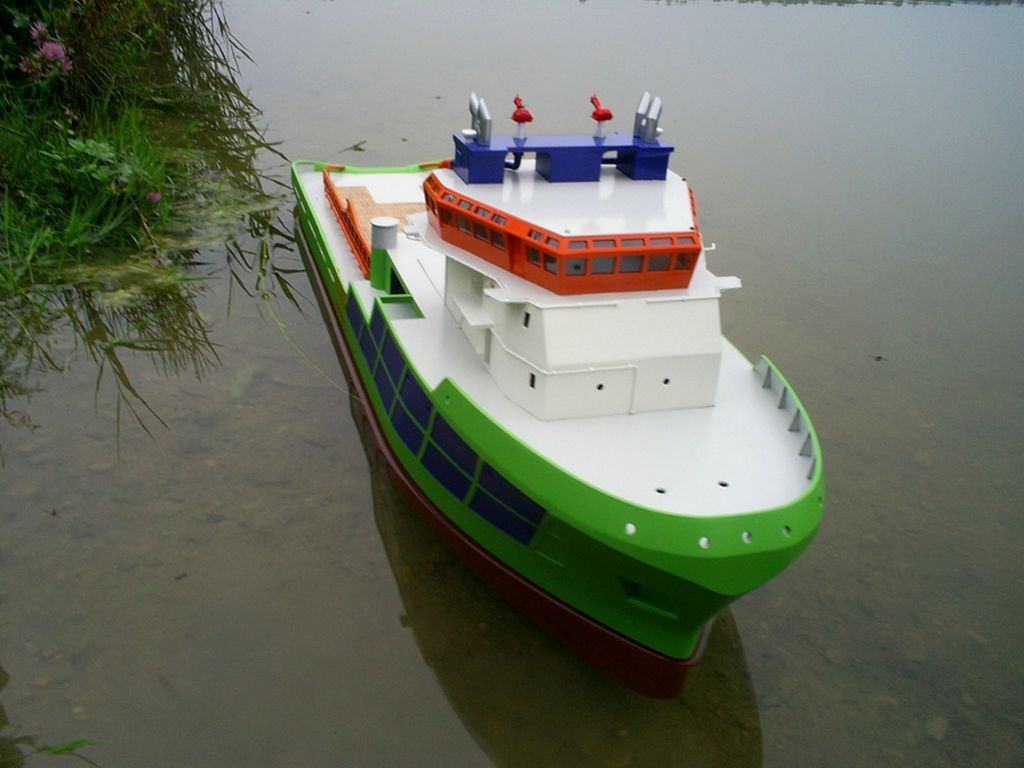 Pokud by byl nasazen do soutěžních plaveb v TT, tak ani tam by s regulací pomocí příčných pohonů tak jak je teď nebyl problém. Moje remorkéry měly příčné pohony vždy jen na přepínač typu jede/nejede. Žádná regulace a taky žádný problém :-)