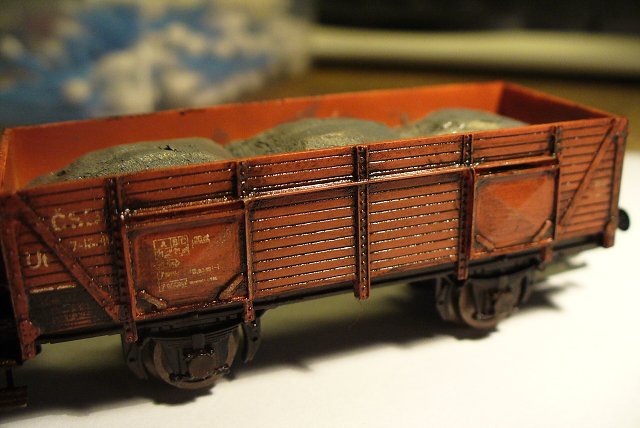 Náklad popele není nic jiného než cigaretový popel, zakapaný ředěným herkulesem. Nějaký popel jsem nasypal i na boky vozu.