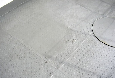 Pokračujeme konečnou úpravou paluby. Podle toho, jakou loď stavíme, může jít o klasickou dřevěnou palubu z prken, v současné době na pracovních lodích nejčastěji používané ocelové pláty s vyválcovanými protiskluzovými prvky nebo speciální potahy z nějakého kompozitu, které najdete na vojenských lodích. Velmi častá je i kombinace těchto povrchů a občas se můžete setkat i s obyčejným betonovým potěrem. Pro specialisty - ten, co jsem viděl, nebyl gletován, ale kvalitní a konečná úprava spočívala v nátěru.