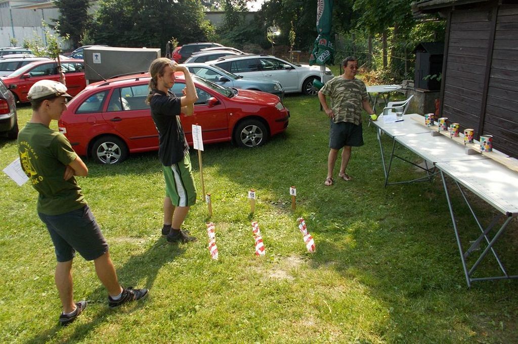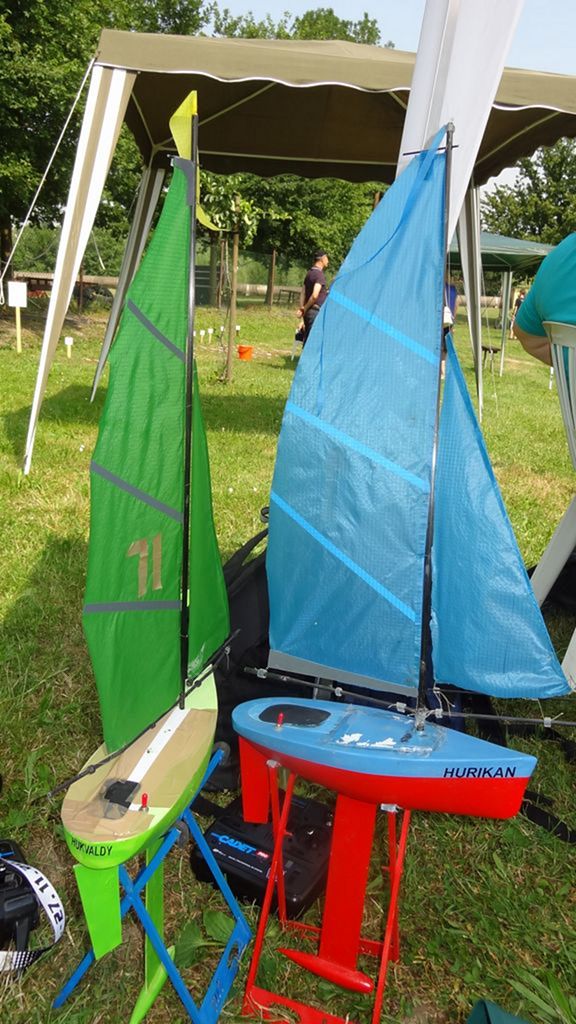 Za krásného počasí se tentokrát v „přístavu” sešli soutěžící v hojném počtu. Přijeli z blízka i z daleka, aby s lodními modely soutěžili v pěti samostatných kategoriích (EX-500, F3-E a 3x F4). Až z Pardubic k nám zavítal pan Jaroslav Jína a nejpočetnější výpravu tvořil kroužek „loďkařů” z Hukvald. Soutěžících tedy bylo celkem 36. Protože někteří aktéři jezdili dvě kategorie, počet startujících se vyšplhal na 55. Soutěž plachetnic Footy se neuskutečnila. Důvodem byla termínová kolize se soutěží Moravského poháru, a tak pořadatel neobdržel včas dostatečný počet přihlášek. Přesto se nakonec v areálu LAŠA objevilo 5 Footyn, které se předvedly v ukázkových jízdách. Předpokládám, že si tak jejich majitelé zajezdili víc, než kdyby čekali na soutěžní start.