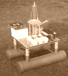 Popis vleku: Vlek je složen ze segmentů. Základní nosný segment - rám, tvoří čtyři stoiny vzájemně spojené jeklovými profily 10x10mm. Provedení spoje - svár. Na spodní stranu rámu se dávají dva válcové plastové plováky dlouhé 100cm, se západkami a matkami pro závitové tyče. Na horní stranu rámu se dává čtvercová platforma 80x80cm. Celá sestava je spojena pomocí čtyř závitových tyčí. Na platformě stažených pomocí matky s podložkou. Rám je vybaven dvěma normalizovanýmy prvky pro uvázání remorkéru, které jsou umístěny v podélné ose plošiny těsně pod platformou. Ve středu platformy se umísťuje těžební věž, která je složena ze dvou dílů, které se s platformou spojují pomocí závitové tyče. Na platformě je umístěna dvoudílná snímatelná nástavba ubykací s heliportem a sklápěcí obslužný jeřáb. Zásobníky a jeřáb nejsou snímatelné.