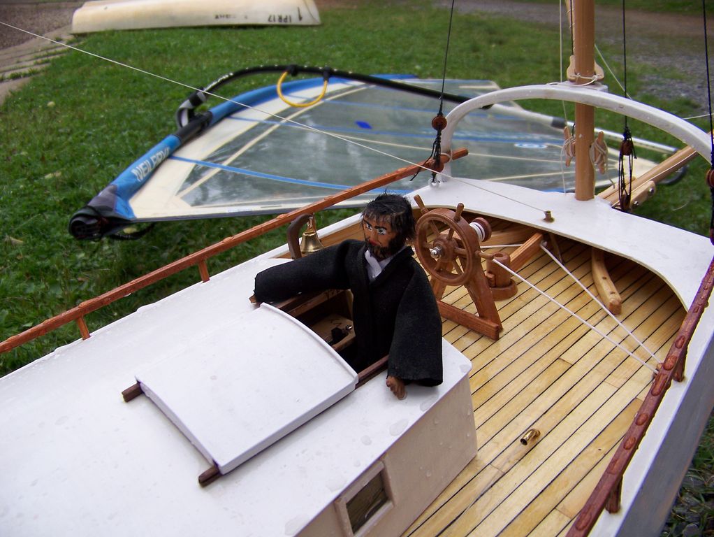 Bylo zajímavé, kolik přihlížejících nemodelářů tyto boje sledovalo, ale asi je to tím, že jachtaři nemají k modelům plachetnic moc daleko. Z představených plachetnic jsem byl nejvíce zvědavý na to, jak dopadne boj stavebnicová ETNZ, kterou přivezl Methodyn, ale vlastní řízení při závodě přenechal synovi, s pravými NSS.