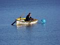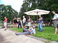 V neděli pak byla hladina klidná, bezvětří, zkrátka typický slunný letní den. Během dopoledne Šurda rozvezl bójky a dali jsme se do prvního závodu. Vytyčený trojúhelník byl sice o něco menší než třeba v Duchově na ME, ale nám to rozhodně nevadilo. I dali jsme 8 plachetnic na vodu a jelo se. O start se postaral výstřel z malého děla. K průstřelu plachet pravděpodobně nedošlo, jelikož si nikdo nestěžoval.