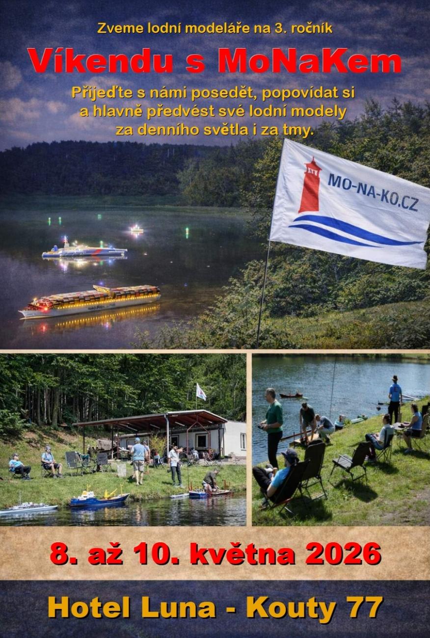 První dva ročníky našeho víkendového srazu lodních modelářů proběhly na rozhraní května a června, letos se přiblížíme více k začátku května. Hostit nás bude opět rybník Homole v Koutech u Ledče nad Sázavou, kam se se svými lodními modely vrátíme v pátek 8. května. V areálu Hotelu Luna na jeho břehu setrváme do neděle 10. května. Čekají nás dva večery u grilu s osvětlenými lodními modely a tři dny na vodě.