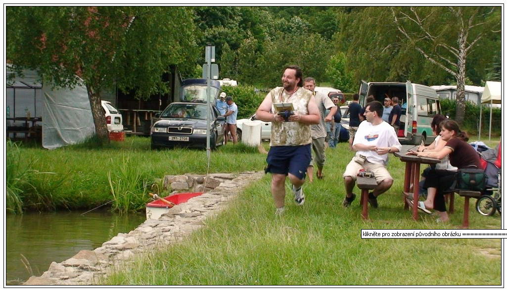 Na obloze azzuro a začalo druhé kolo. Někteří si polepšili, jiní naopak, to je prostě TT. Asi nejvíce smůly si vybralo Last Minute v těžkém TT. Keba jel s Dádou. Při první jízdě Dáda ztratil lodní šroub a víc než polovinu trati Keba táhl sám nejen vlek, ale i neovladatelné Dádovo P19. Jednošroubá loď prostě bez šroubu nejede a tak se prostě vezl. Dádovi naštěstí půjčili nový lodní šroub a mohl nastoupit k druhé jízdě. Při té se Kebův remorkér náhle zastavil. Po zběžné prohlídce se ukázalo, že baterie v Monaku II. se rozhodly ukončit svou pouť po soutěžích TT a Last Minute byl nucen vzdát. Bohužel se opět objevilo rušení. Tentokrát ho měla na svědomí Dětská portička a jejich bezdrátové mikrofony. Bohužel se nám je nepodařilo přesvědčit, aby je nepoužívali a tak někdo problémy měl, jiný ne, ale v podstatě vše probíhalo, jak mělo. Pomalu se dojezdilo, sečetlo a hurá dobíjet baterky. Někdo šel posedět do hospůdky, jiní si prostě sedli před chatky a povídali si o všem možném. Motorkáři naprosto super vyhrávali, prostě pohoda.