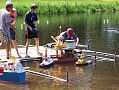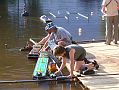 Rychle se ubytujeme a už se jdeme pozdravit s několika statečnými, kteří už stihli vybudovat luxusní molo, postavit z loňska tolik osvědčený robustní vojenský stan a připravit materiál pro stavbu tratě. Společně s Bambinotem a dalšími se vrháme do vody a stavíme trať prostě tak, že bójku nebo překážku na místo určení přineseme. Voda je příjemně prohřátá a za tři hodiny máme vše hotovo a připraveno. Tratě byly navrženy tak, aby umožňovaly plavbu tří soulodí najednou. Nepůsobily nikterak složitě. Prostoru pro manévry dostatek, vše vypadalo tak nějak až podezřele jednoduše. Zkušení kapitáni již ale moc dobře vědí, že zdání opravdu klame a že problém bude někde jinde. A byl.