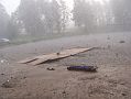Jak vše rychle začalo, tak vše rychle skončilo. Bylo namrazíno a venku se začalo opět rozednívat. Povrch v okolí stanu byl pokryt takřka souvislou vrstvou krup. V lese bylo několik vyvrácených stromů, které naštěstí padaly na opačnou stranu než byl kemp. Z guláše, který zůstal, bohužel, venku v hrnci, se stala polévka kořeněná listím a jehličím. Na vodní hladině bylo tolik větví, jehličí a listí, že nebylo kde spustit lodě. Vlek pro lehký tug towing zůstal venku a vypadal jako po náletu "kotlářů" za 2. světové. Nemine ho druhá totální rekonstrukce. Vana Klubu NAMOLO! pro tlačné remorkéry měla svůj náklad poněkud rozházený a je do doků odsouzeny taky. Fóglofku rekonstrukce nemine taky a Robertova tlačná vana se proměnila v malý bazén.