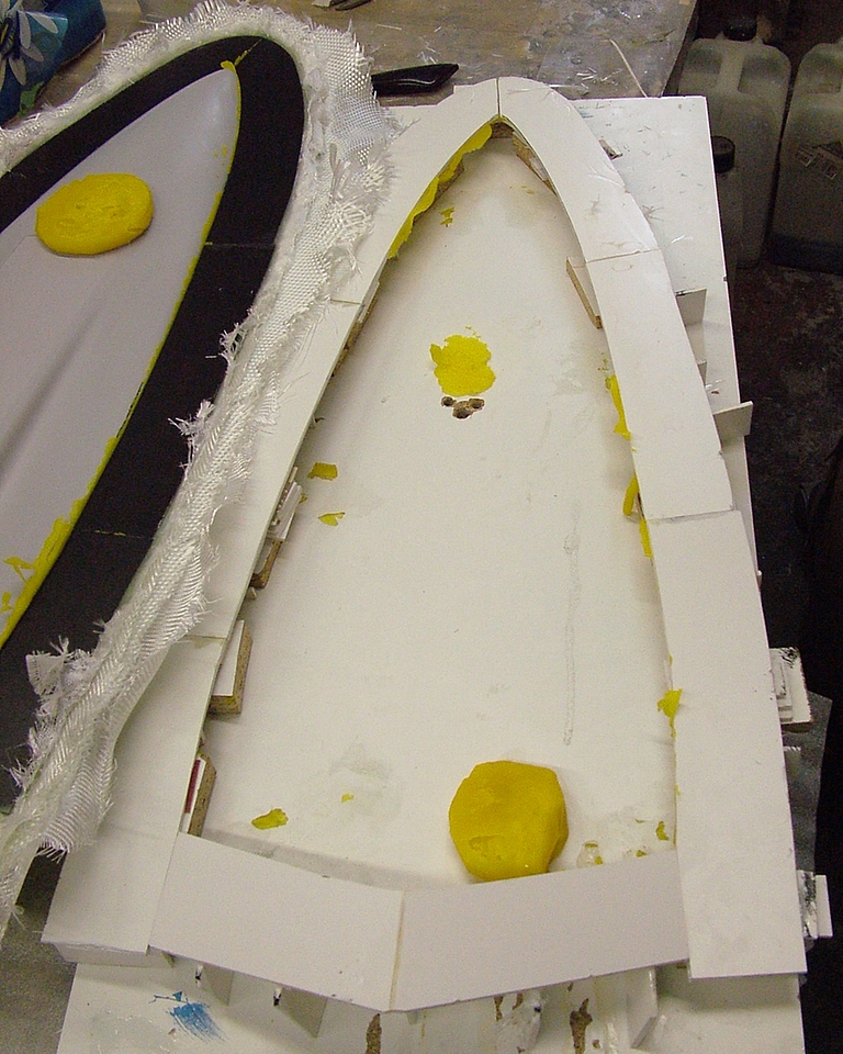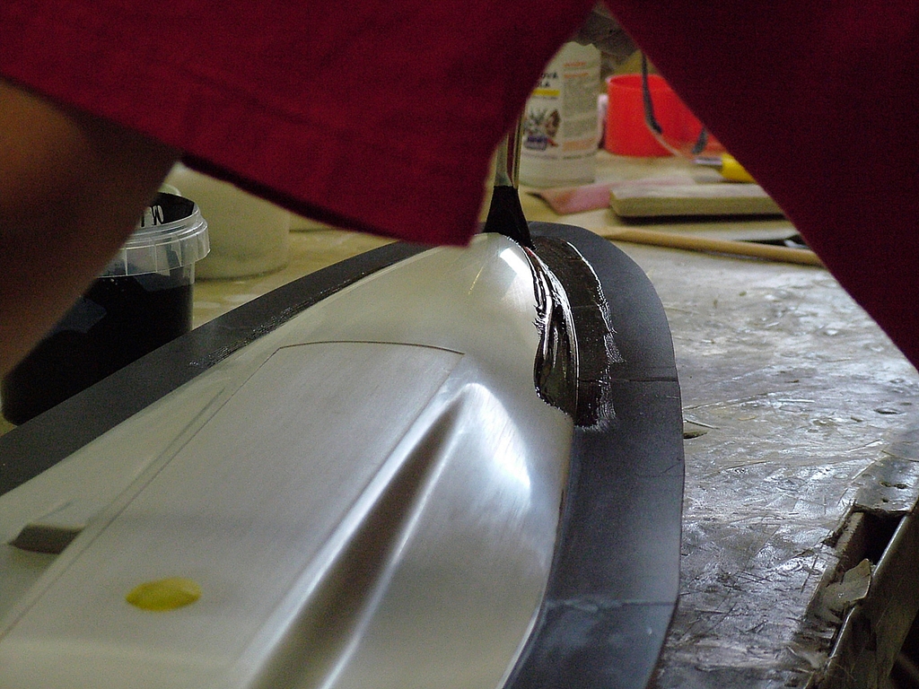 Vlastní forma je vytvářena ručním kladením jednotlivých vrstev. Jednotlivé vrstvy výztuže jsou štětcem prosycovány iniciovanou pryskyřicí. Jako laminační pryskyřice je použit Epoxid L285 míchaný v poměru 100:40 hmotnostní poměr (objemově to je 100:47, funguje ale i 100:50) a jeho cena je 700 Kč/kg.