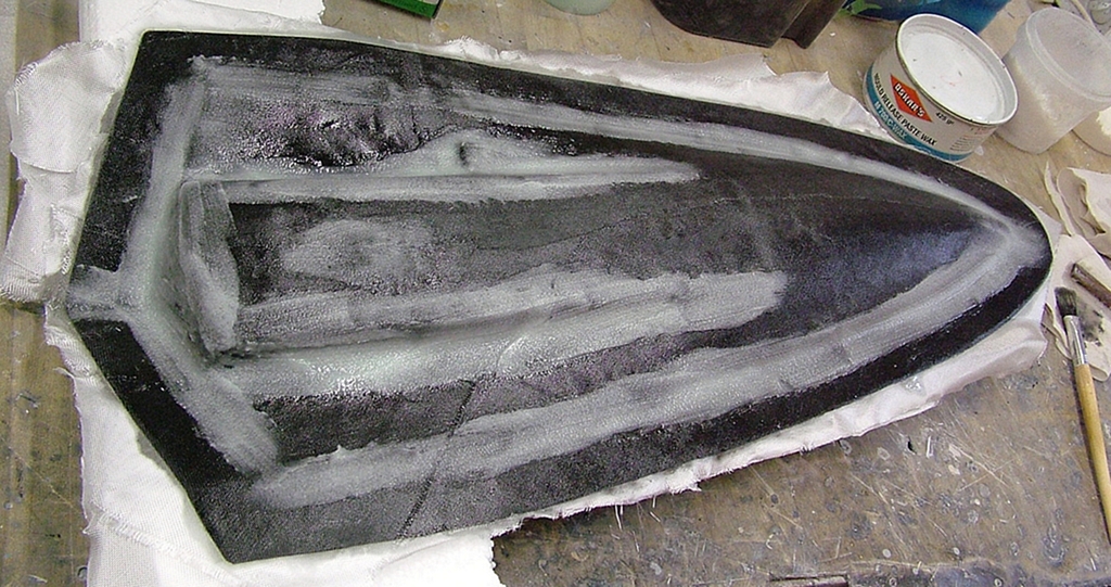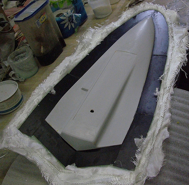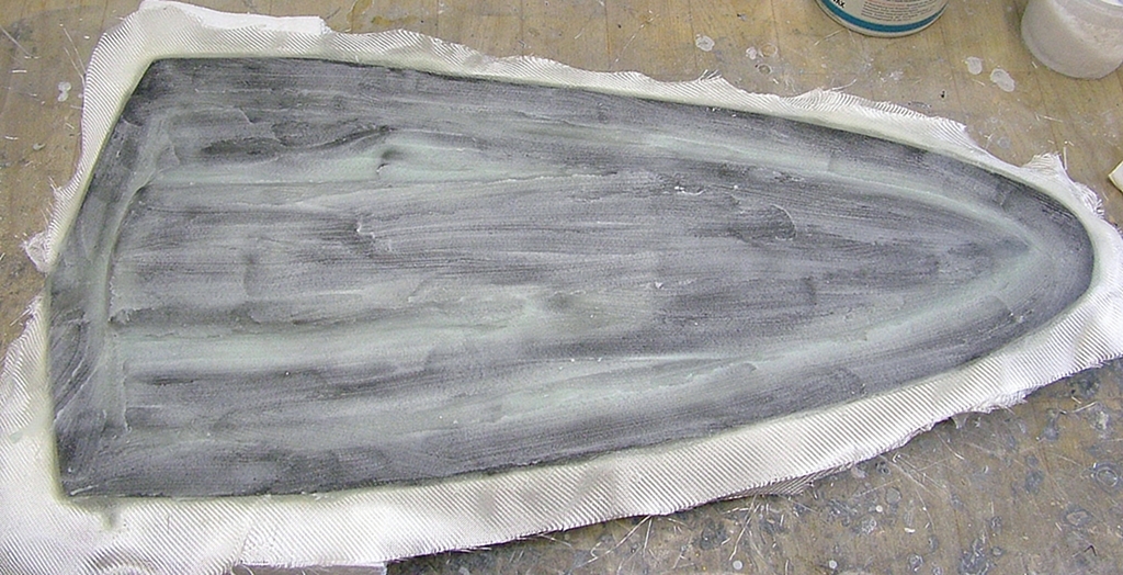 Zlepšuje kvalitu povrchu, ale bohužel také okopíruje jakékoli drobné vady v povrchu kopyta (jako jsou vrypy po smirkovém papíru). Je velmi důležité, aby se nanesla jen velmi tenká a souvislá vrstva gelu, a tím z ní unikly všechny případné bubliny. Zároveň se musí v dalších vrstvách ať už zahuštěnky (jedná se o epoxid smíchaný s nasekanými skelnými vlákny), tak tkaniny, dbát zvýšené opatrnosti, aby se do gelové vrstvy nedostala skelná vlákna. To by mělo vliv jednak na vzhled povrchu produktu, tak i na zvýšenou možnost přichycení k formě. U funkčních ploch by to mohlo mít i jiné důsledky. Druhá vrstva je ze sekaného skla. Další dvě vrstvy jsou z 80 g/m2 skelné tkaniny, samozřejmě dle komplikovanosti tvaru trupu a použité tkaniny se musí některá místa vyrovnávat zahuštěnkou. Pak následují tři vrstvy 160 g/m2 skelné tkaniny. Na případné doplnění míst, kam se tkanina nedostane, použijeme zahuštěnku. Před následnými čtyřmi vrstvami 500 g/m2 skelné tkaniny je nutné pečlivě upravit problematické křivky zahuštěnkou, protože se tato tkanina nanáší v kuse a zároveň nemá příliš velkou schopnost přizpůsobit se tvarově komplikovanému povrchu.