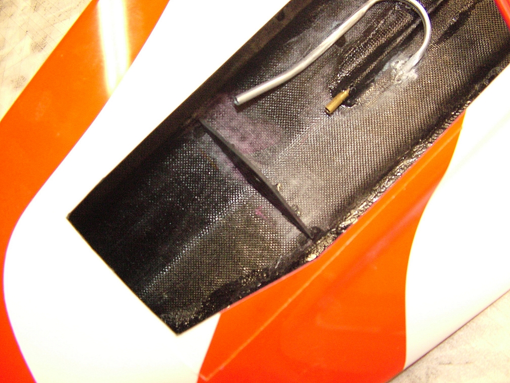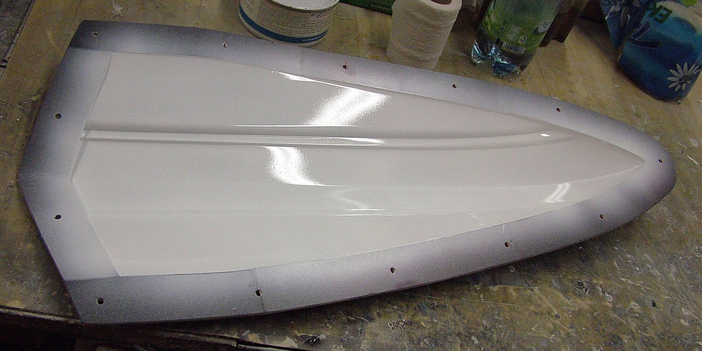 Následně se do lodi vyřízne otvor, kterým se bude do jejího vnitřku ukládat vybavení modelu. Otvor se samozřejmě musí taktéž zabrousit, aby neměl ostré hrany. Další operací je vlepení dvojdílné přepážky převracecí komory dovnitř trupu. Přepážka vytvoří komoru, která slouží pro převrácení modelu zpět do správné polohy, když dojde při jízdě jakýmkoliv způsobem k jeho převrácení dnem vzhůru.